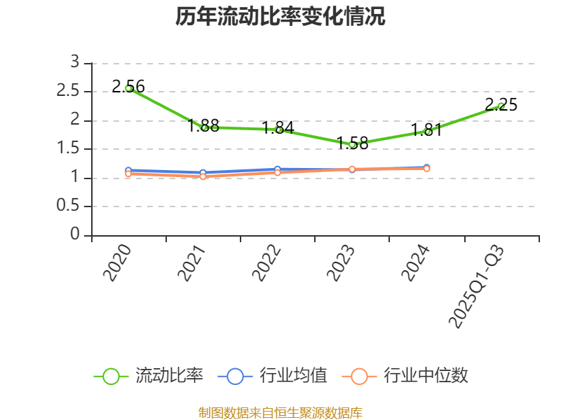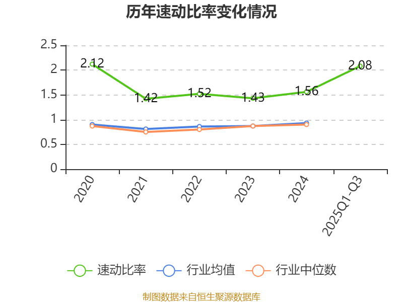 2025年前三季度,公司流动比率为2.25,速动比率为2.08。