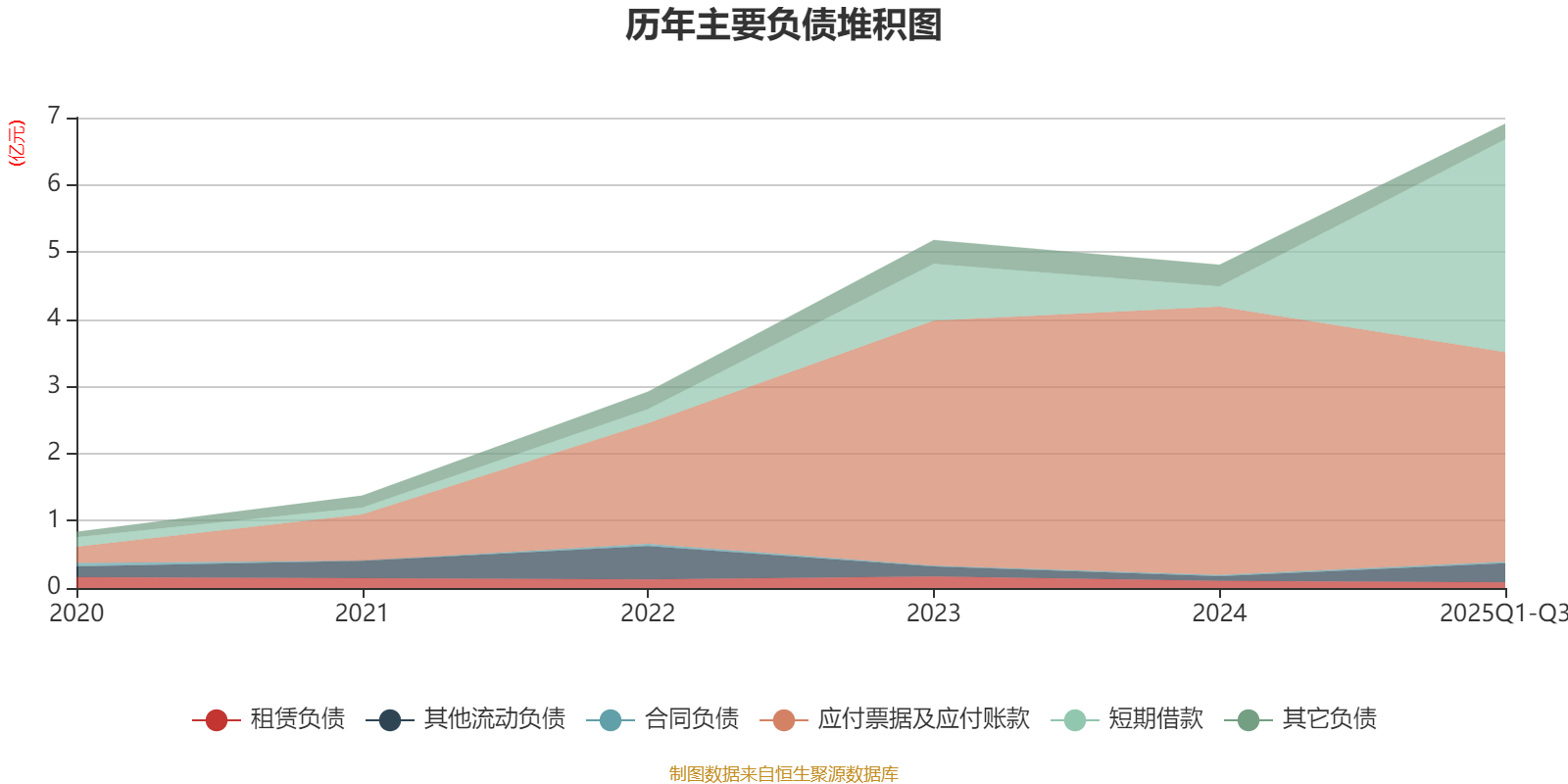 负债重大变化方面,截至2025年三季度末,公司应付票据及应付账款较上年末减少21.92%,占公司总资产比重下降19.72个百分点;短期借款较上年末增加949.89%,占公司总资产比重上升15.07个百分点;其他流动负债较上年末增加310.4%,占公司总资产比重上升0.96个百分点;应付职工薪酬较上年末减少50%,占公司总资产比重下降0.9个百分点。