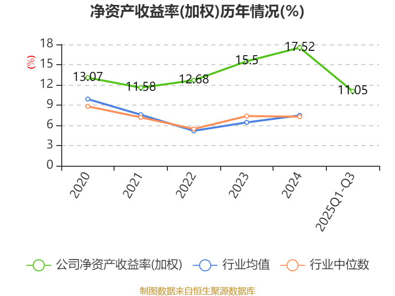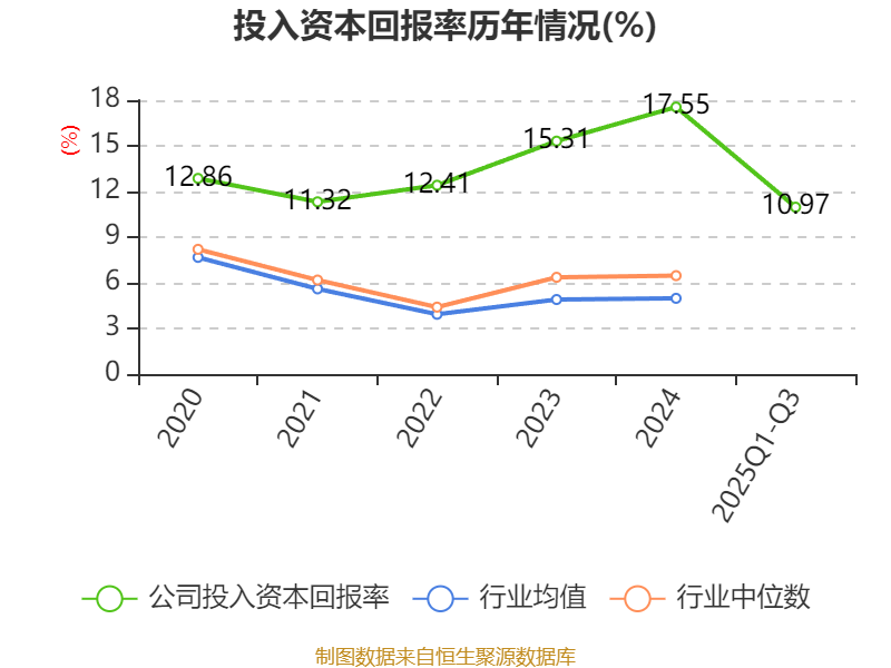 盈利能力方面, 2025年前三季度公司加权平均净资产收益率为11.05%,同比下降1.98个百分点。公司2025年前三季度投入资本回报率为10.97%,较上年同期下降1.91个百分点。