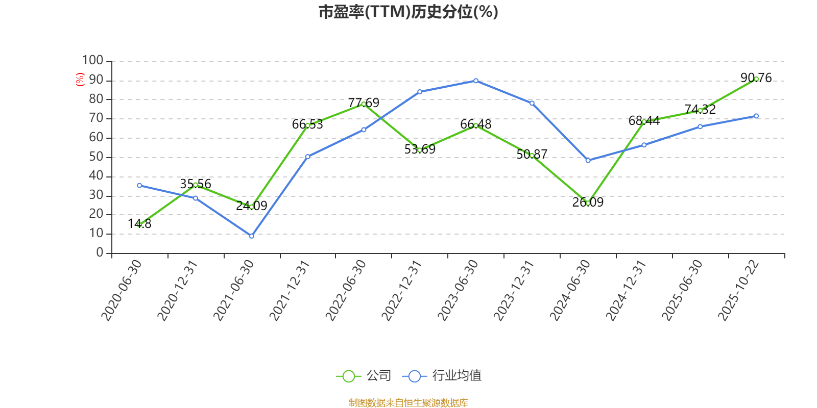 市盈率、市净率为负时配资炒股排名,不显示当期分位数,会导致折线图中断。