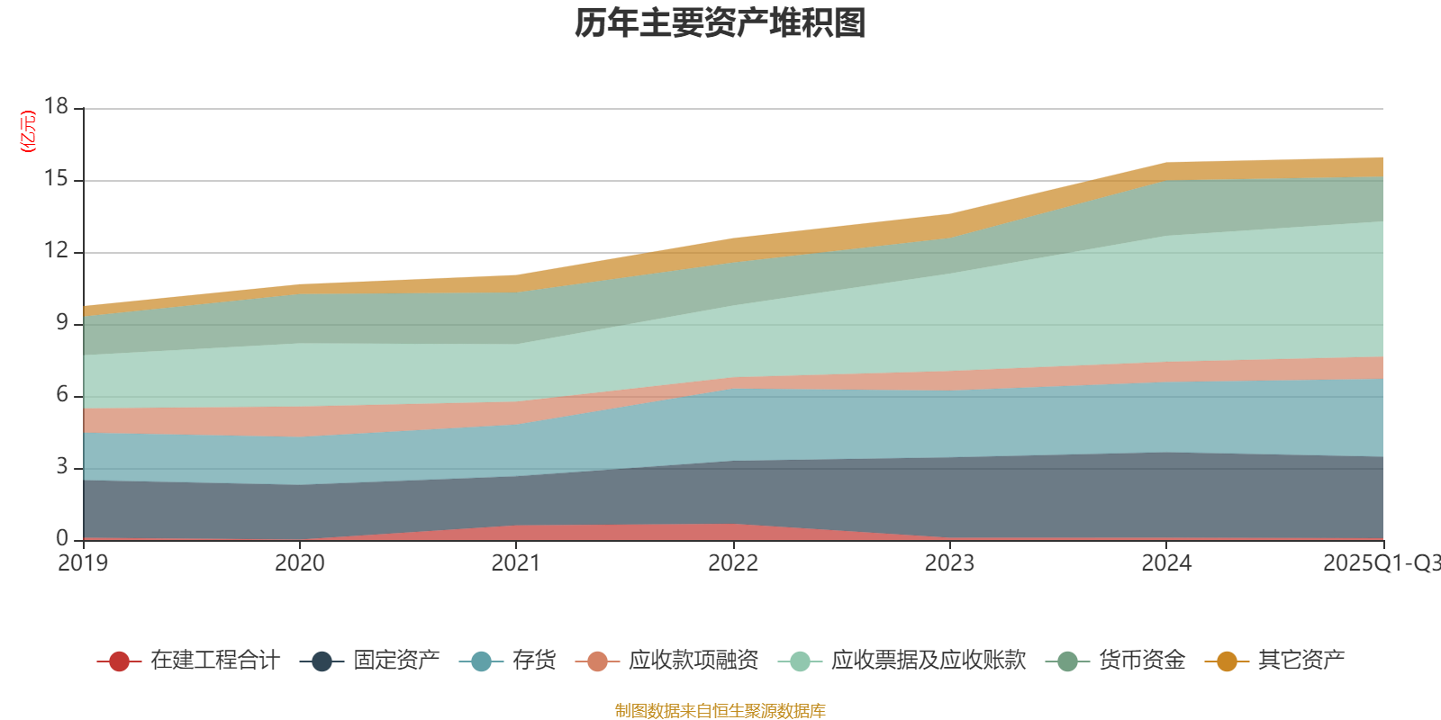 资产重大变化方面,截至2025年三季度末,公司货币资金较上年末减少19.19%,占公司总资产比重下降2.96个百分点;应收票据及应收账款较上年末增加7.37%,占公司总资产比重上升1.99个百分点;存货较上年末增加11.07%,占公司总资产比重上升1.79个百分点;固定资产较上年末减少4.78%,占公司总资产比重下降1.36个百分点。