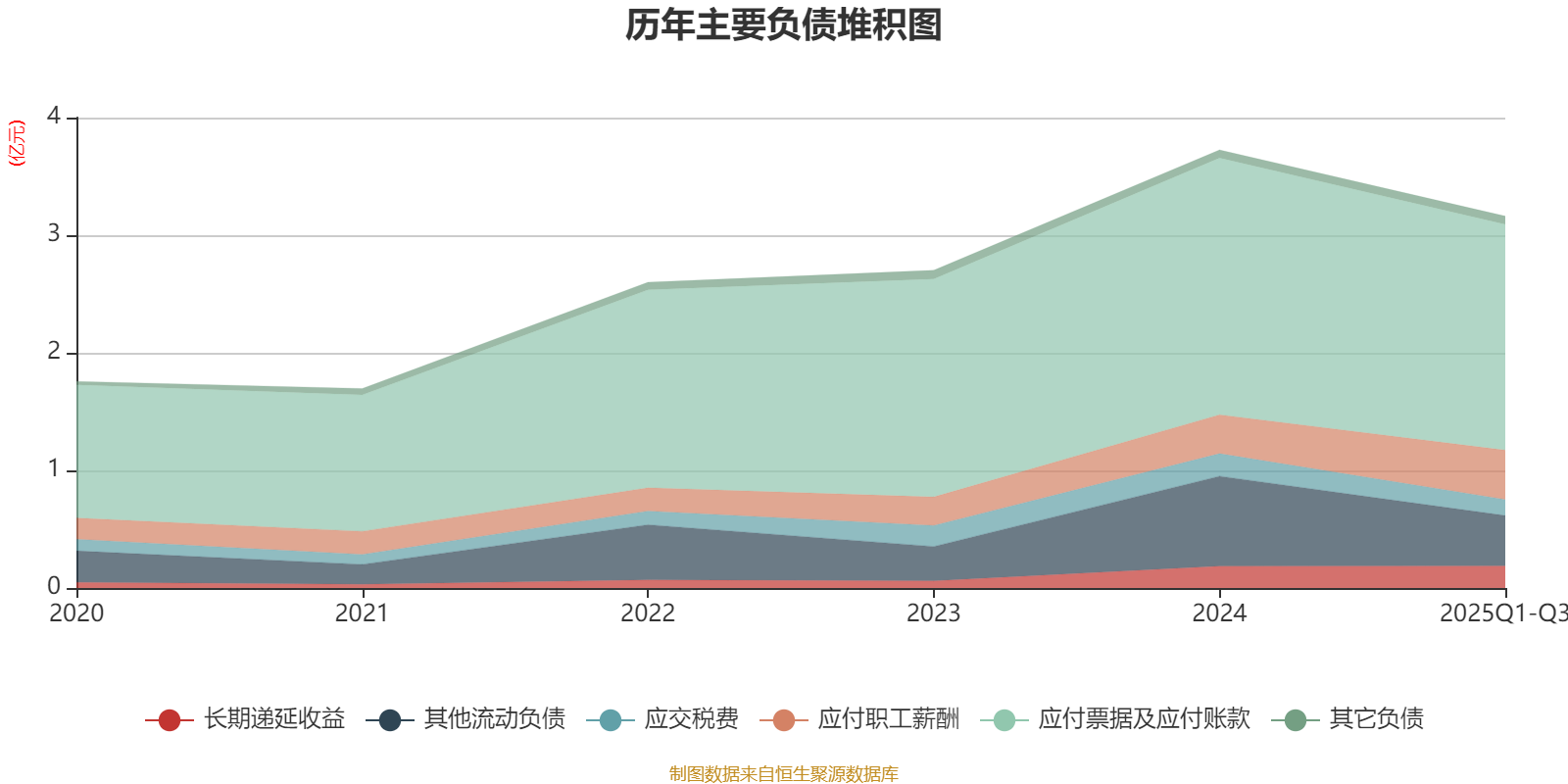 负债重大变化方面,截至2025年三季度末,公司其他流动负债较上年末减少43.89%,占公司总资产比重下降2.17个百分点;应付票据及应付账款较上年末减少12.12%,占公司总资产比重下降1.84个百分点;应付职工薪酬较上年末增加27.11%,占公司总资产比重上升0.53个百分点;应交税费较上年末减少28.8%,占公司总资产比重下降0.36个百分点。